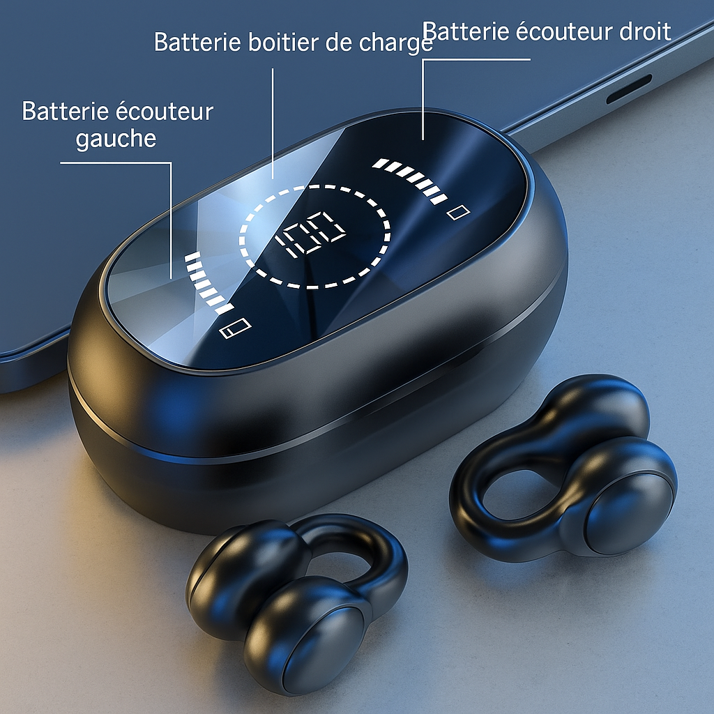 "Ces écouteurs sont absolument parfaits pour mes courses matinales. J'adore comment ils restent en place et me permettent d'entendre mon environnement pendant que je cours. La qualité sonore est étonnamment bonne aussi. L'autonomie de la batterie est également correcte - je n'ai pas besoin de les recharger tous les jours. Quel soulagement !"